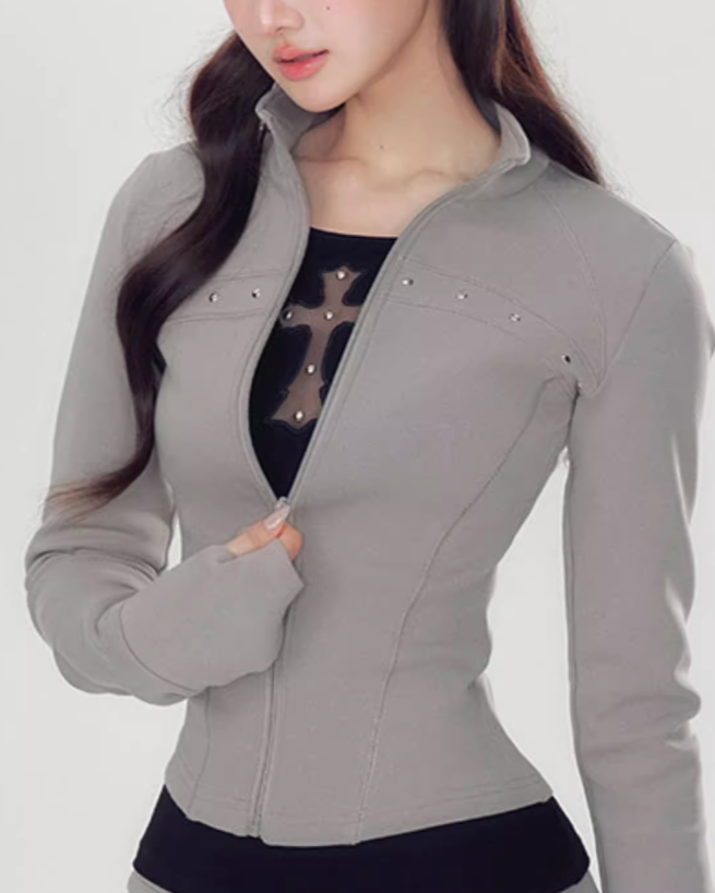 シンプルでありながらエッジの効いたクロスデザインとスタッズが印象的なジャケット。ファスナー仕様で着脱も楽々、シルエットを美しく見せるデザインでスタイリッシュな着こなしが可能です。