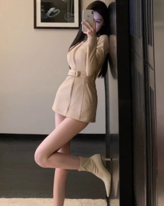 シンプルながらも洗練されたデザインのベルト付きミニワンピース。ジャケット風のトップと細身のシルエットが特徴で、上品な着こなしを実現。フロントジッパーとゴールドボタンでアクセントを加え、カジュアルからフォーマルまで幅広く活躍する一着です。