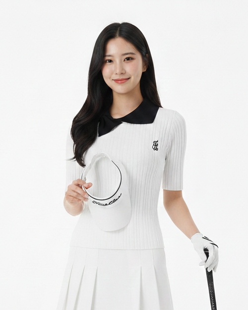 ゴルフシーンはもちろん、デイリーやカフェシーンにも自然に馴染む、上品で着回し力の高いトップスです。